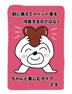 インターネットの“非モテ文化”はイベント事を冷笑しがちですが、そろそろダサいからやめようねというヒモックマなりのメッセージが込められています。