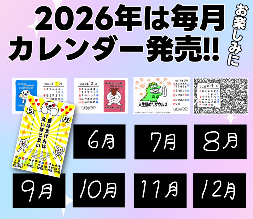 今後も毎月、新しいヒモックマのカレンダーが公開されていきますので、お楽しみに!